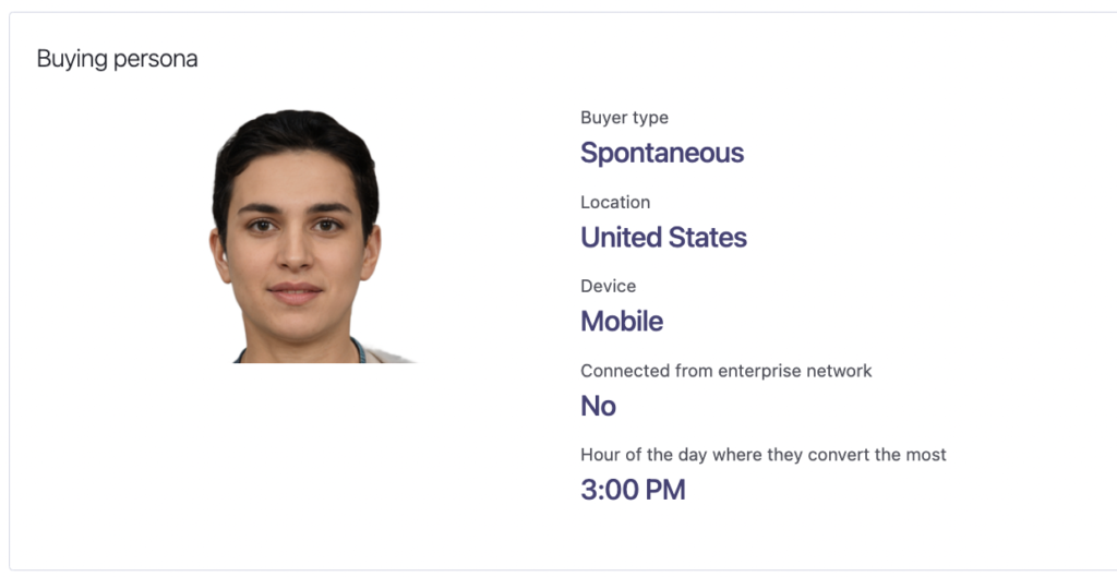 Explore the ‘How to Target‘ section: take the next step in crafting your customer personas by exploring this section within the Buyer Persona report. Here, you’ll gain precise insights into how to effectively target your average customer. Discover practical, actionable strategies to guide them toward conversion.